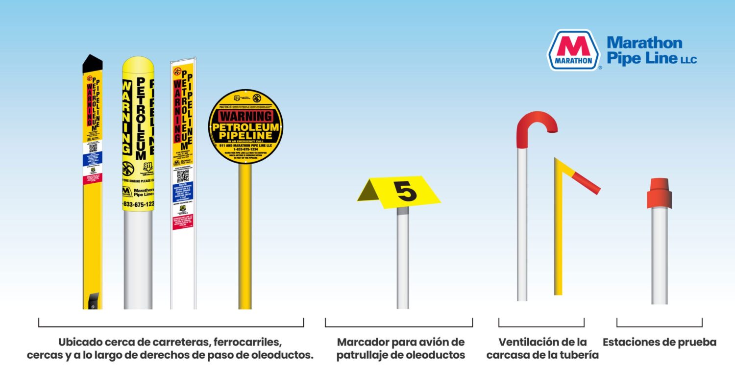 En caso de emergencia con el oleoducto, primero llame al 911 y luego llame a Marathon Pipe Line LLC al 1.833.675.1234